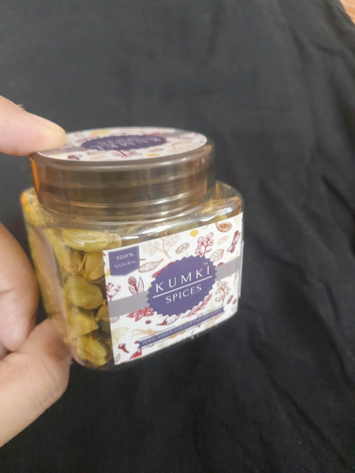 As soon as you open the bottle and take a whiff , the aroma of cardamom tells it's authenticity. I could finally understand the difference between regular cardamom we buy vs kumki. They are thicker and longer in size with seeds also bigger impart a very lasting taste. It ws the best elaichi tea we ever had with just one cardamom enough to make 6-8 cups fill the air with enticing aromaπππ. Excellent packaging and easy to store. Value for money