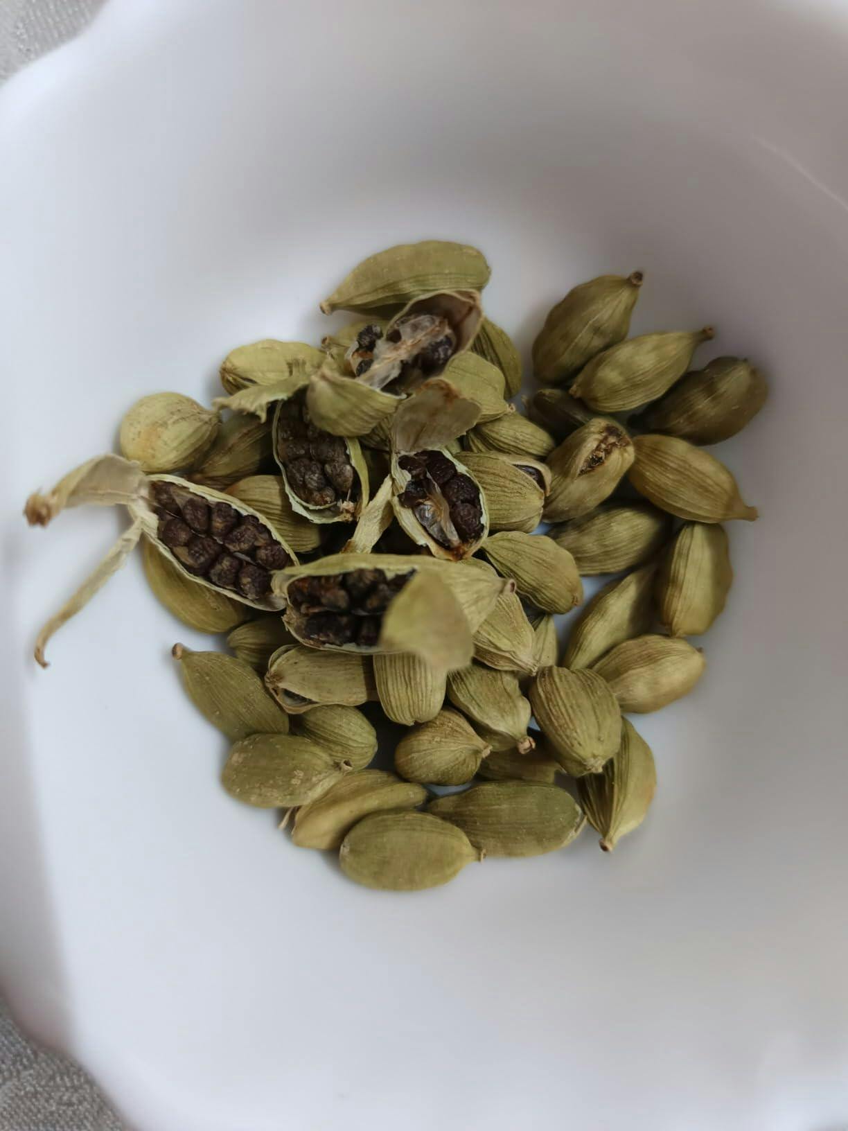 cardamom has a strong smell and a fresh taste , green cardamom is excellent, with a good aroma and quality π superb πππ my mother really like the spices ,freshness,color.